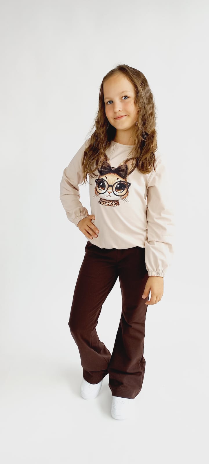 Elegancka i wygodna bluzka z długim rękawem, stworzona z myślą o dziewczynkach w wieku 3–11 lat. Uszyta z wysokogatunkowej bawełny z dodatkiem elastanu, jest miękka, przewiewna i doskonale dopasowuje się do sylwetki.