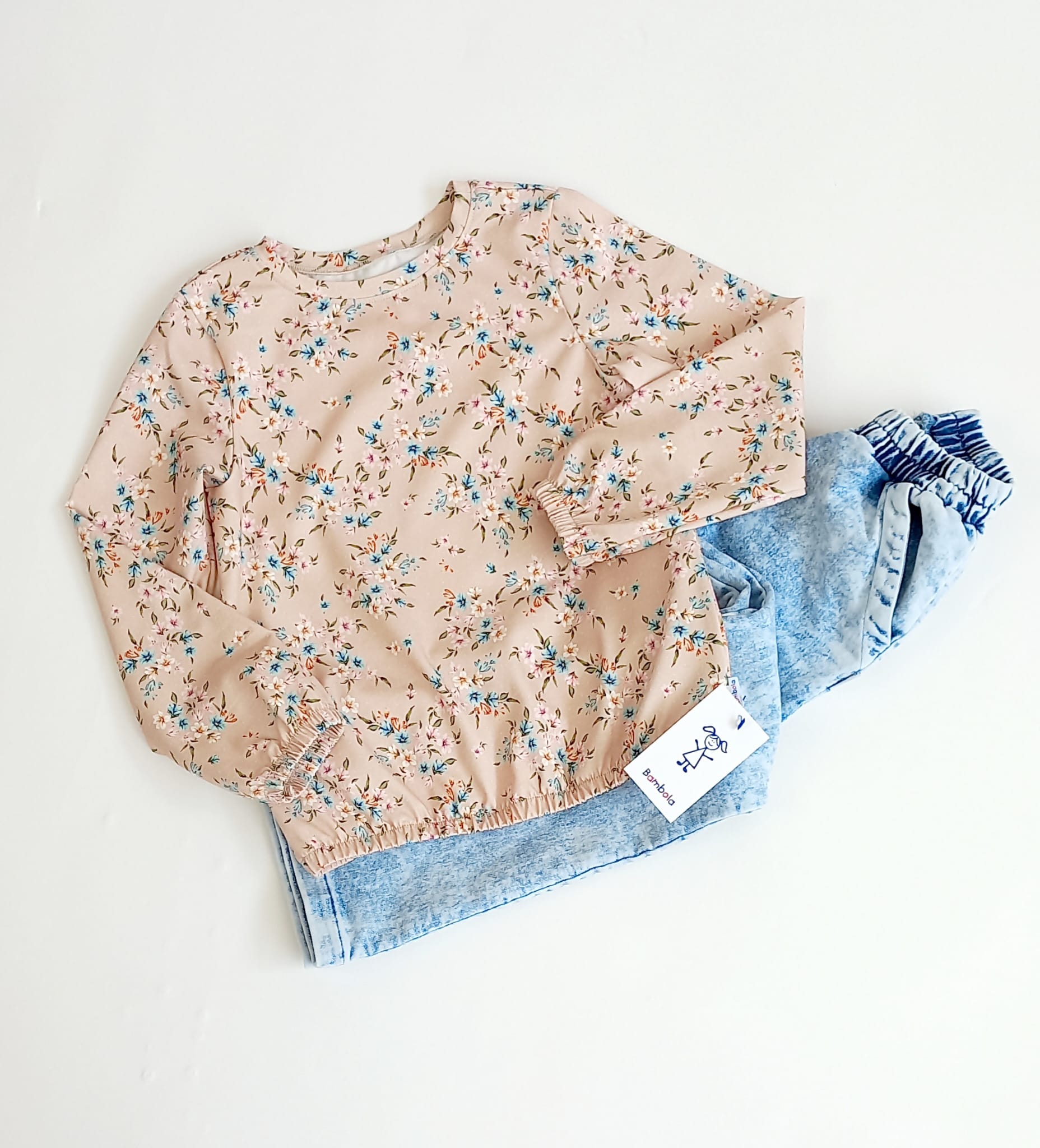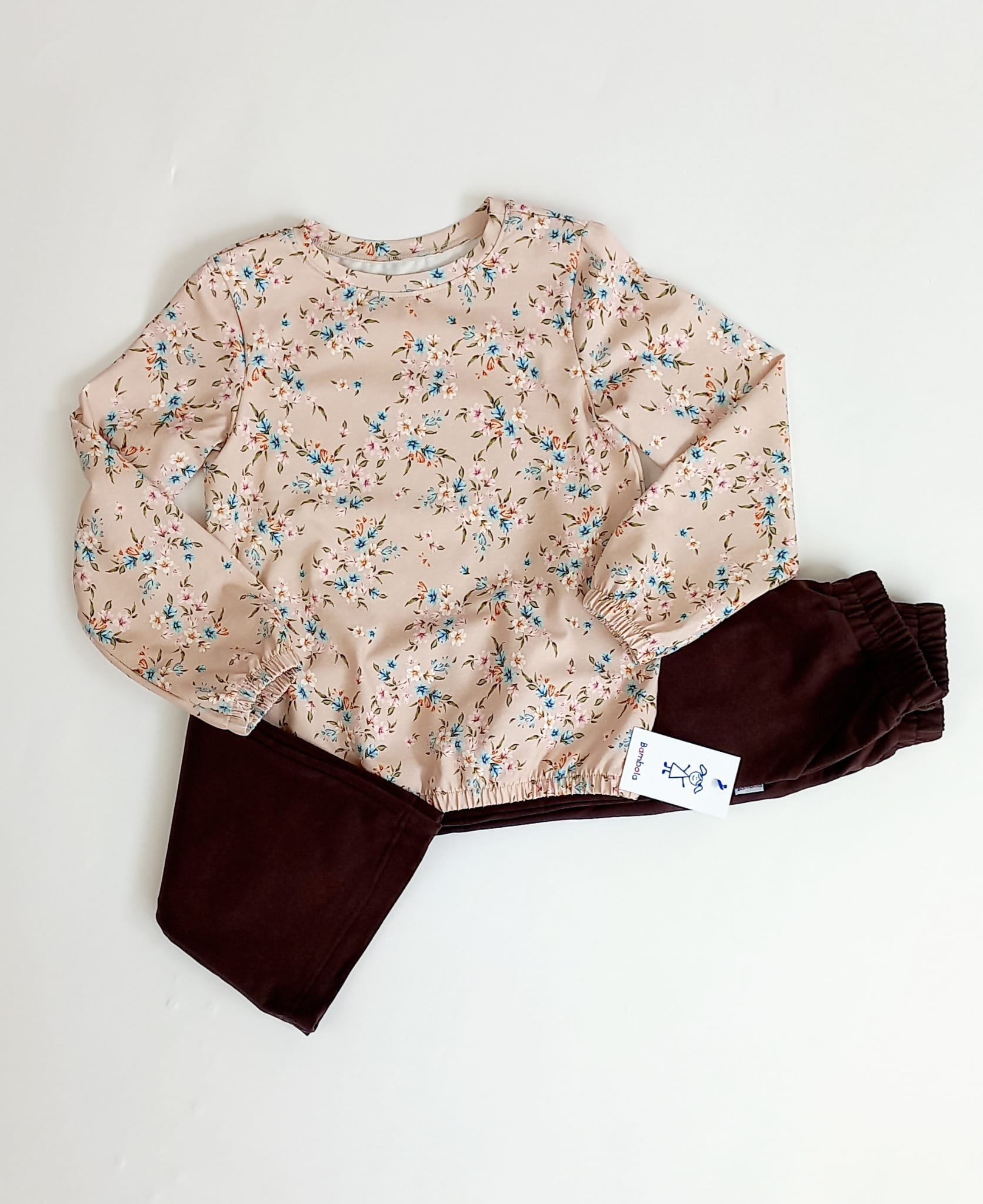 BLUZKA DŁUGI RĘKAW DRUK KWIATY CIEPŁY BEŻ