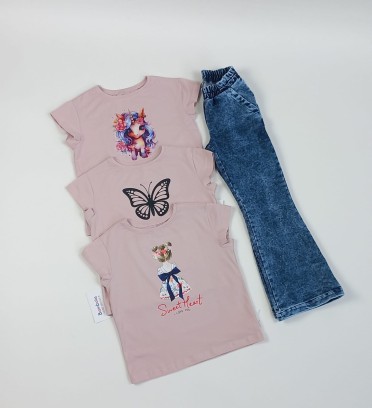 Bluzka krótki rękaw róż z aplikacją MOTYL